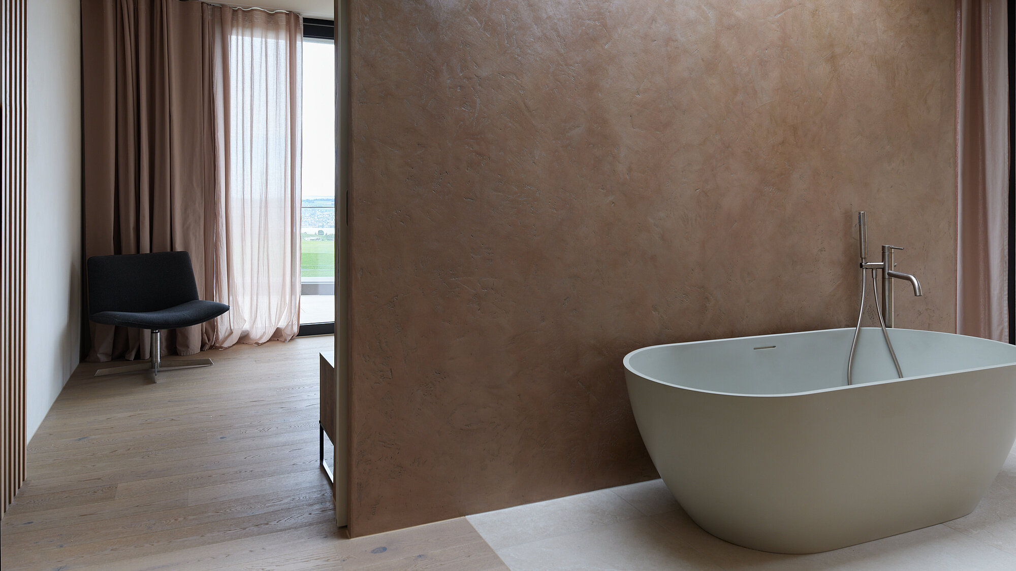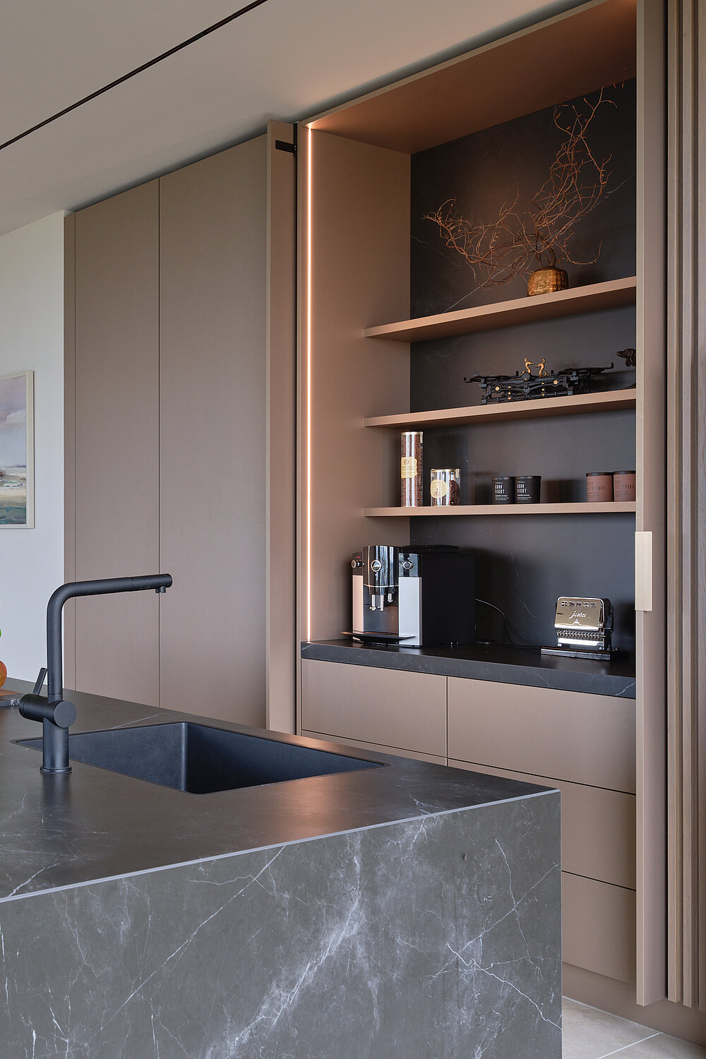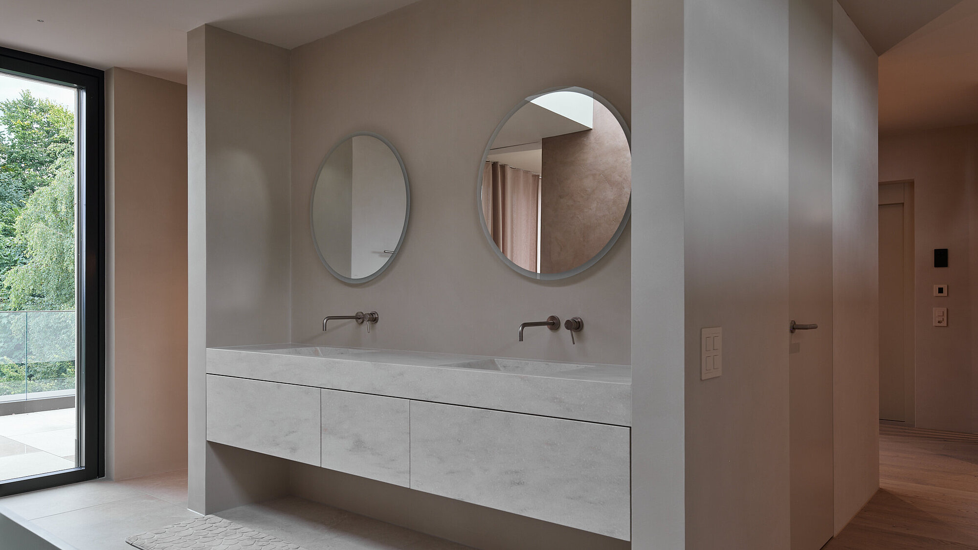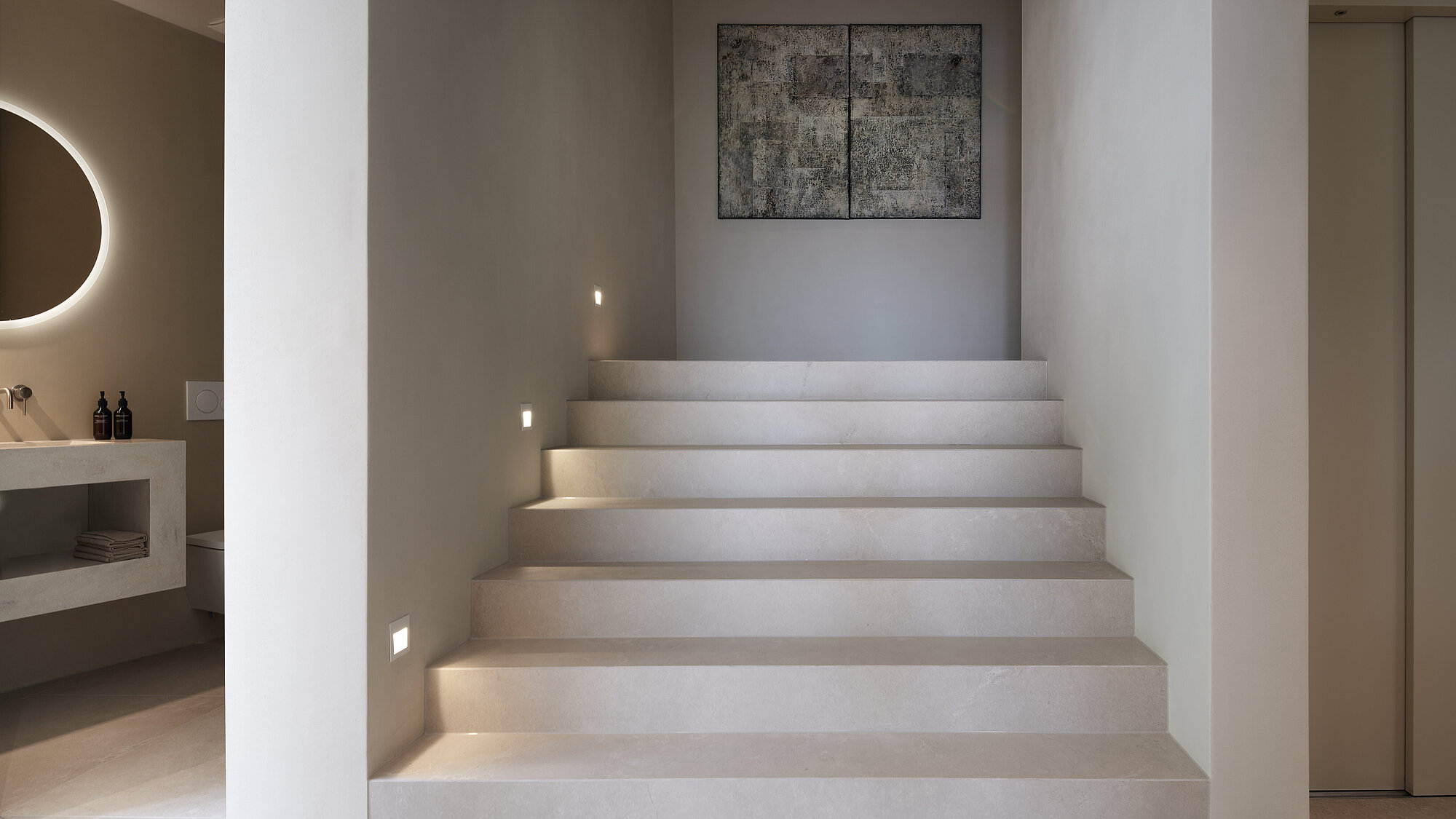 Der zweigeschossige Eingangsbereich vermittelt bereits beim Betreten ein Gefühl von Grosszügigkeit und architektonischer Klarheit. Hochwertige Oberflächen, Design-Elemente und ausgewählte Kunstobjekte unterstreichen den hochwertigen Charakter. Die Gestaltung vereint modernes Wohnen mit einer warmen, einladenden Atmosphäre.