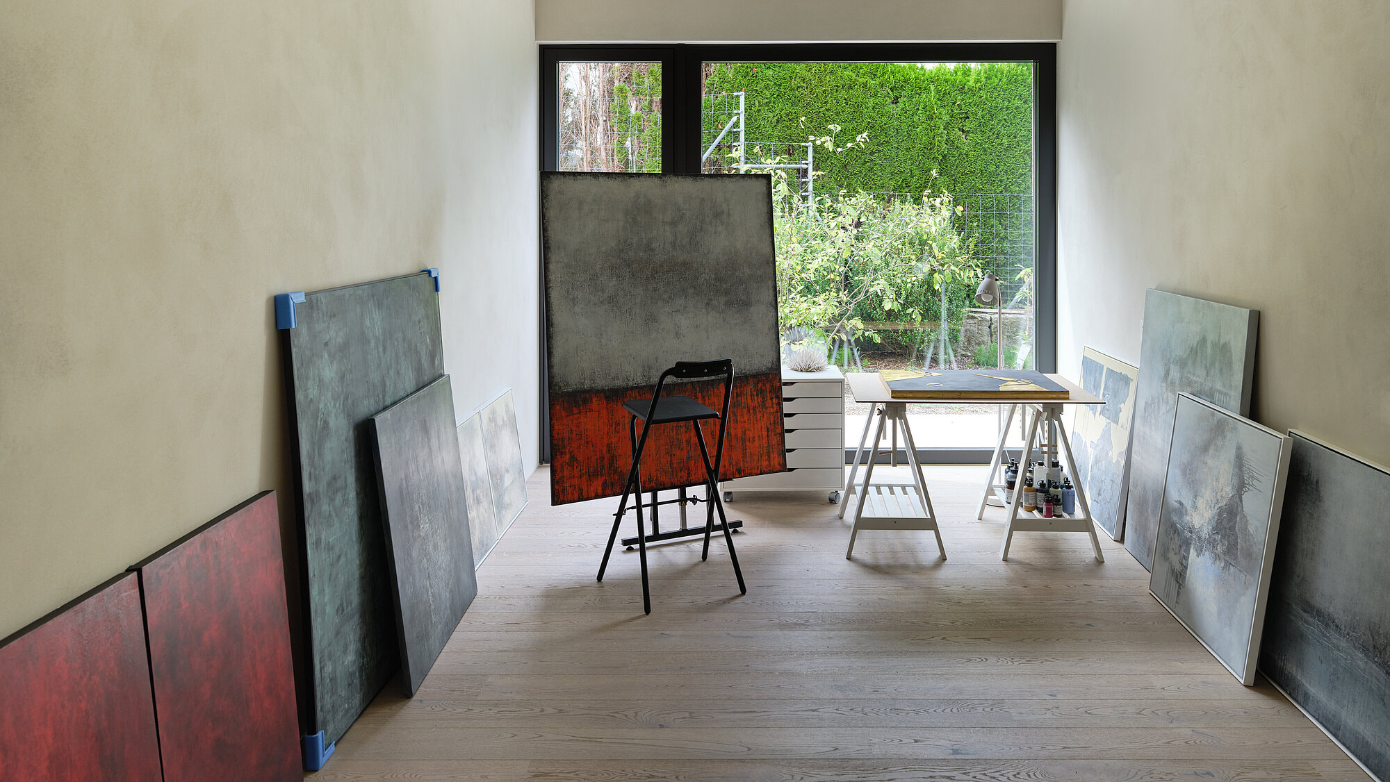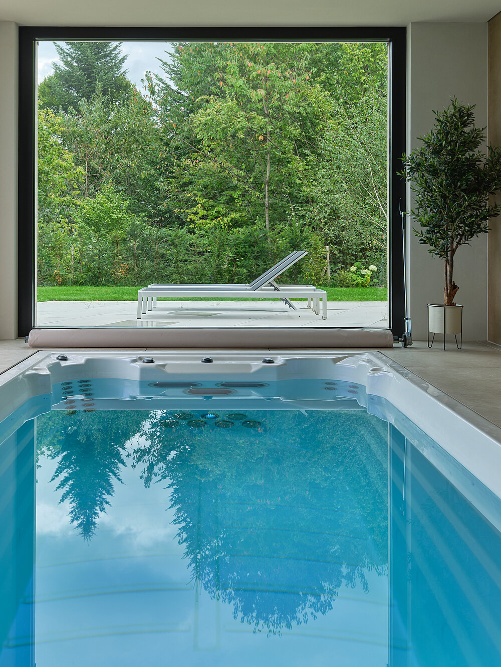 Im Obergeschoss befindet sich der private Masterbereich mit Schlafzimmer, Ankleide und Bad en Suite, ausgerichtet auf maximale Privatsphäre und Aussicht. Das Gartengeschoss ergänzt die Villa mit zusätzlichen Schlafzimmern, Atelier sowie einem Wellnessbereich mit Indoorpool und Sauna. Die durchdachte Grundrissplanung nutzt die Hanglage optimal und verbindet Qualität, Funktionalität und modernes Design zu einem ganzheitlichen Wohnkonzept.