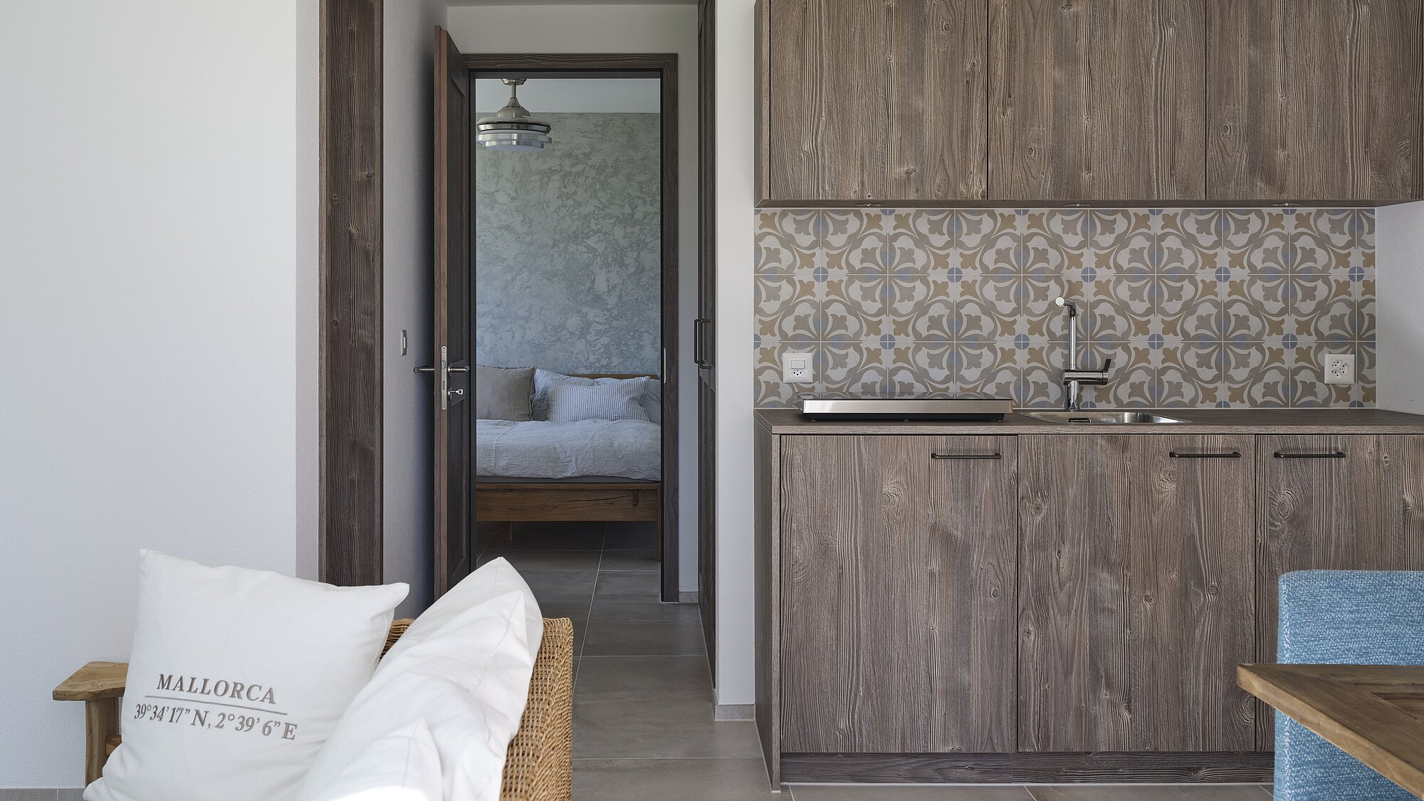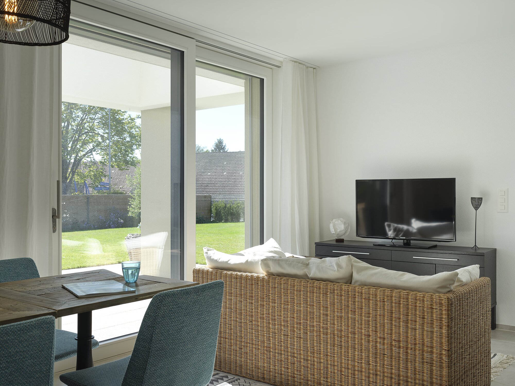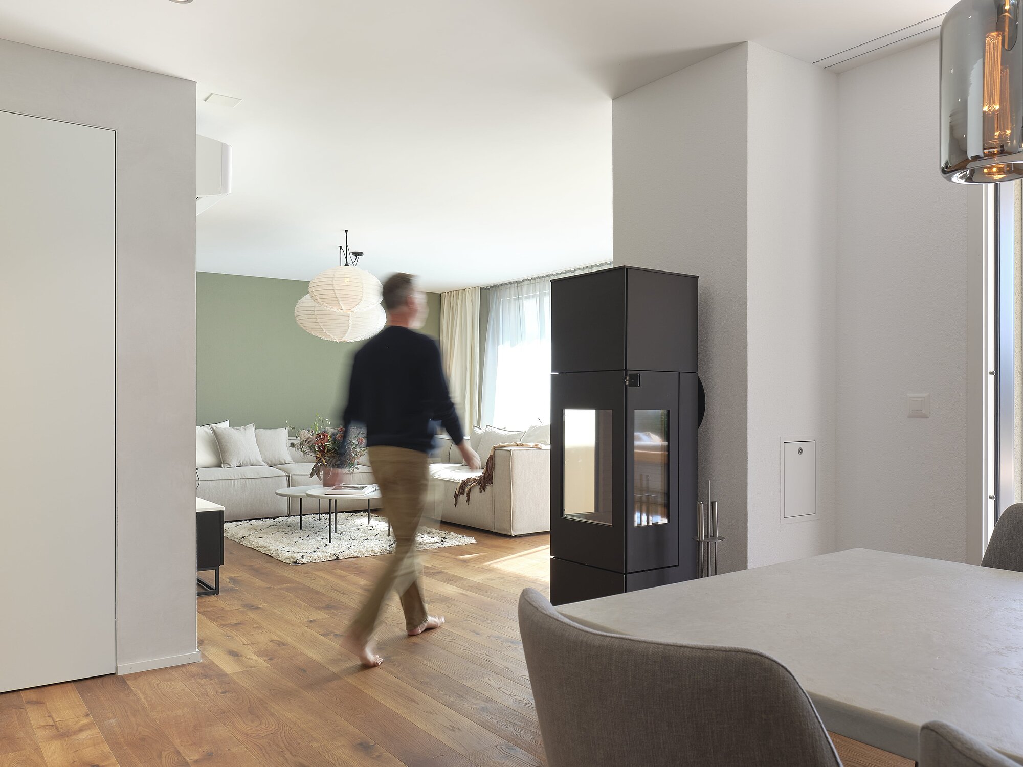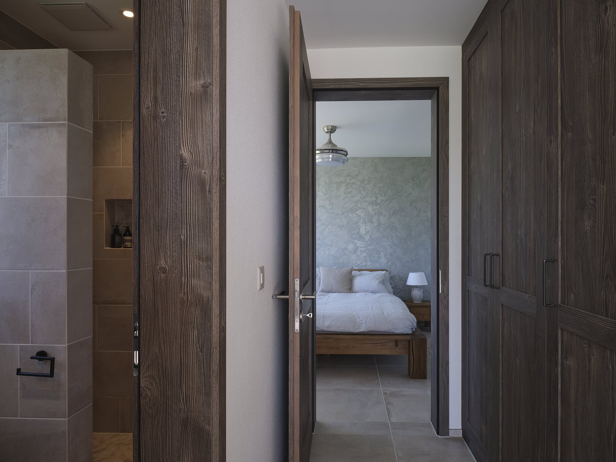 In the bathrooms, natural materials emphasize the reference to the surrounding landscape and give the rooms a relaxing ambience.