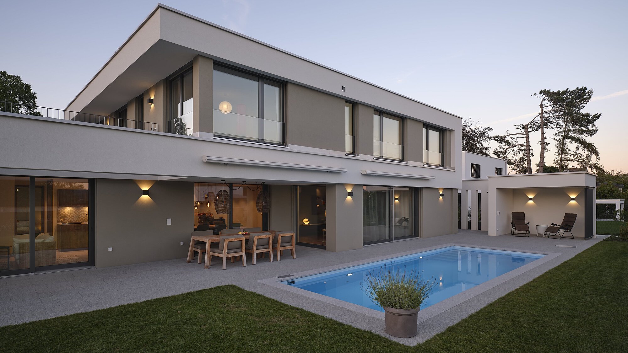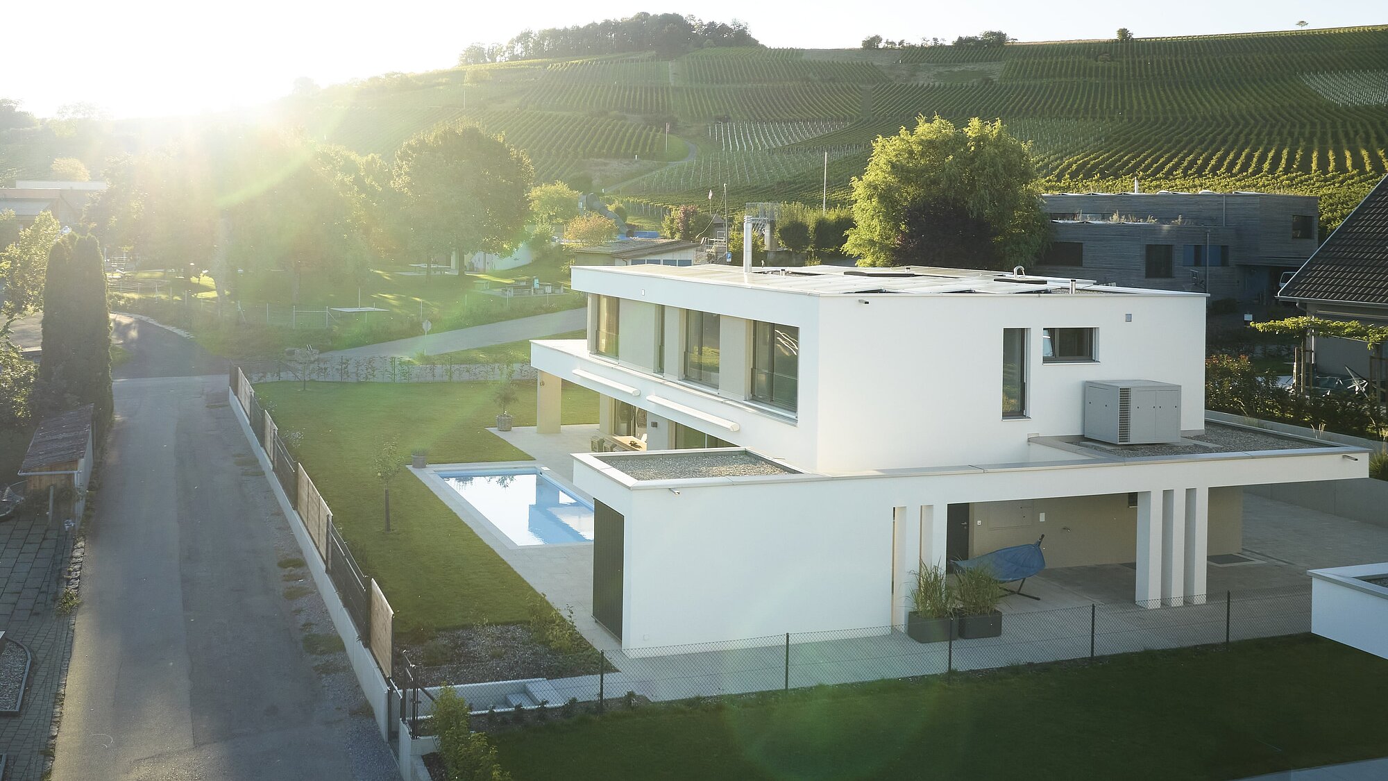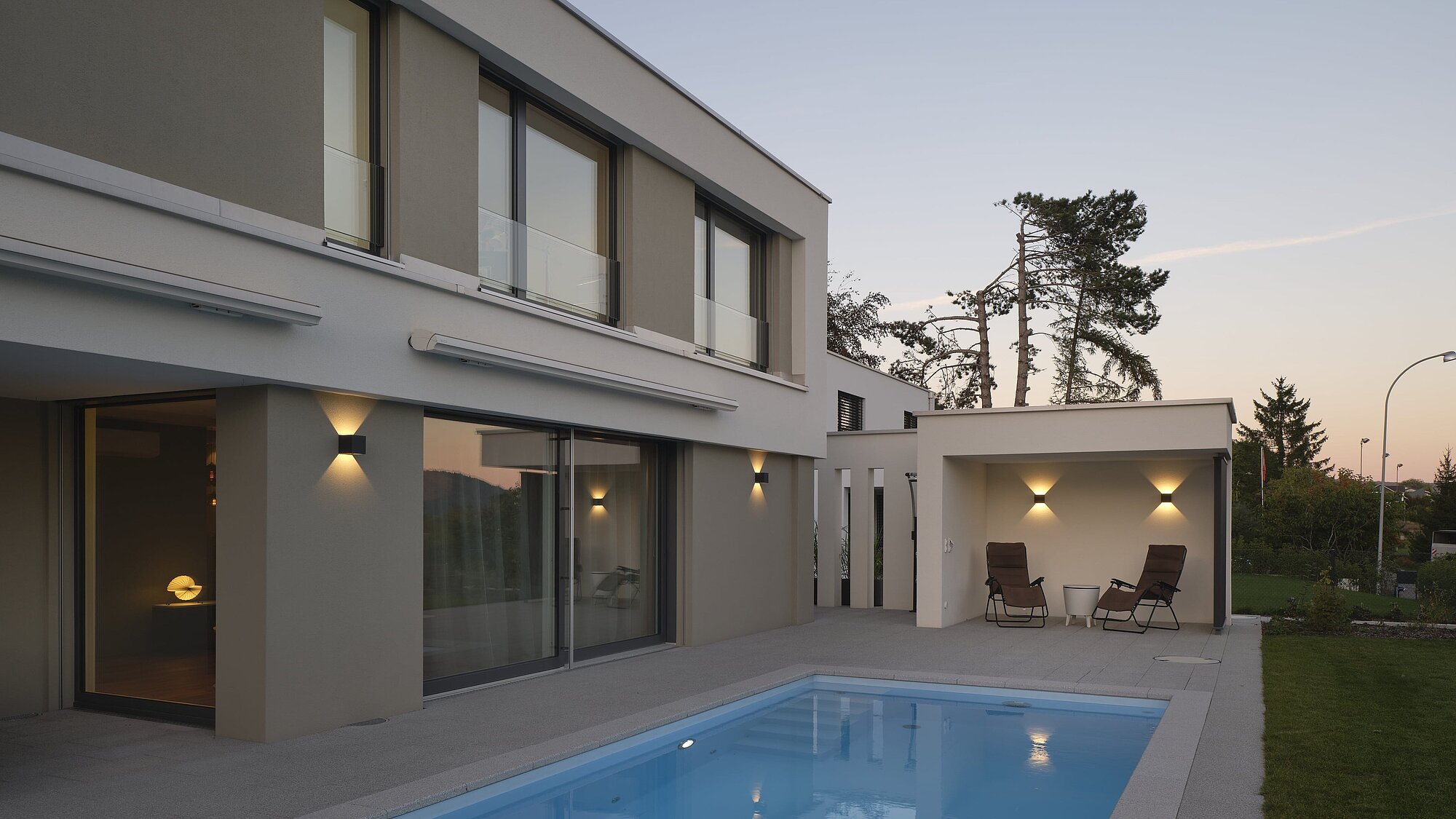 Tranquillity, elegance and grace characterize VITIS VINIFERA. The plot is located on the edge of the village. The quiet area and the connection to the landscape were integral to the client and us while creating the design. Through the large window openings and the covered seating area, the first floor transitions smoothly between inside and outside, while the upper floor offers a wide view of the vineyards.