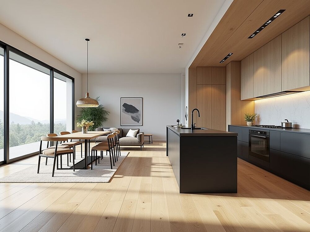 At the heart of the project are carefully planned floor plans and strong community qualities. EMRA includes thoughtfully designed 3.5-room apartments and 5.5-room apartments, accommodating different living situations while following a unified architectural concept. Generous living, dining, and kitchen areas open toward the landscape through floor-to-ceiling glazing, creating bright open living spaces with strong visual connections to the surroundings.
