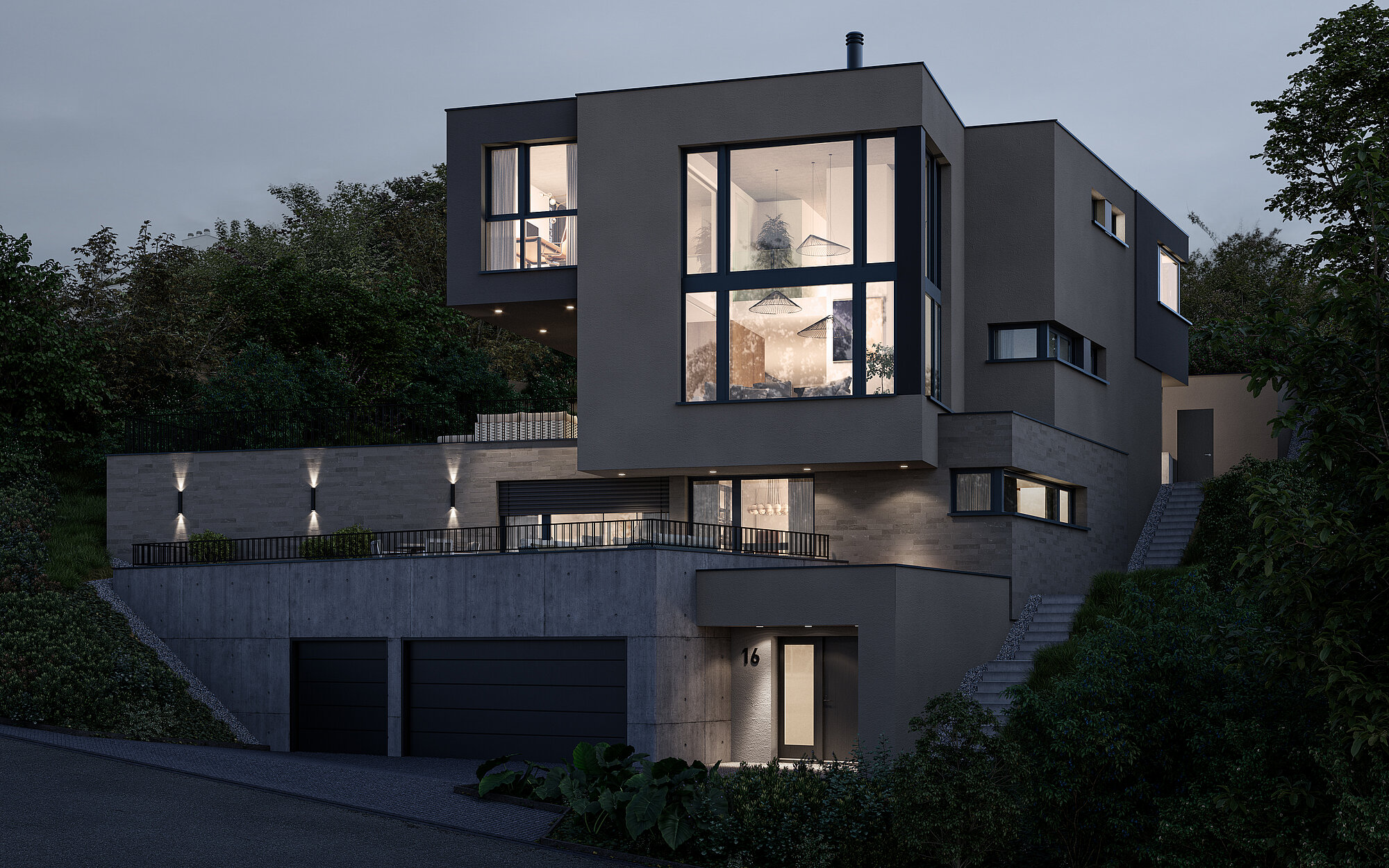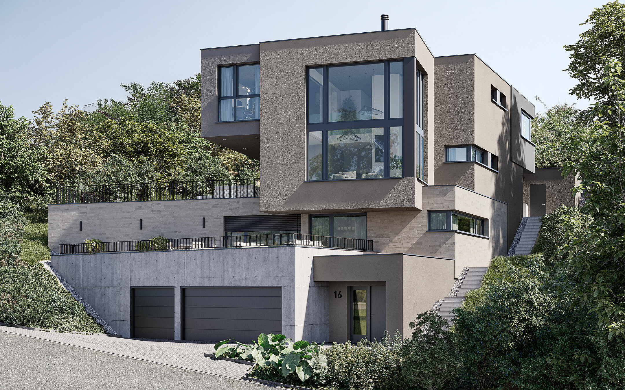 Einfamilienhaus VENTO: Architektur in steiler Hanglage mit Panoramablick